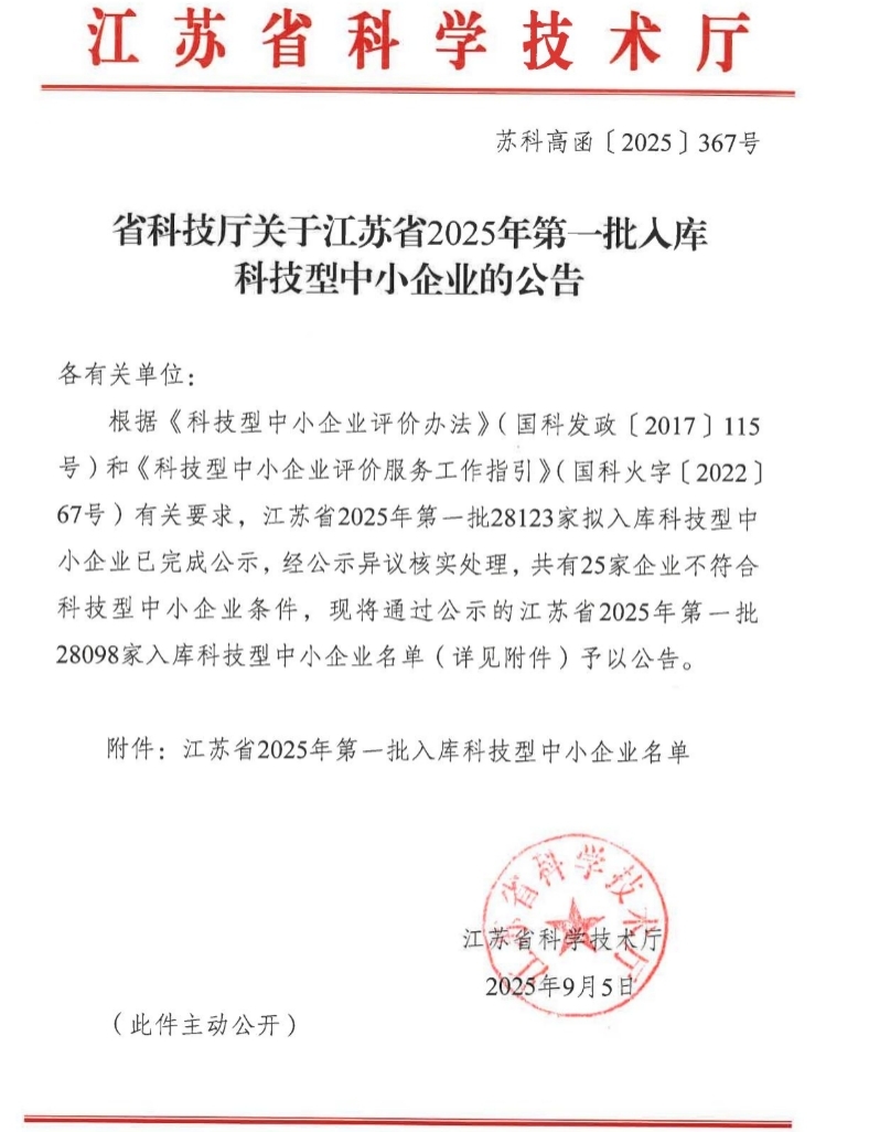 | 公司成功通過2025年全國科技型中小企業(yè)認定作者:admin 來源: 日期:2025-9-23 17:26:15 人氣:
