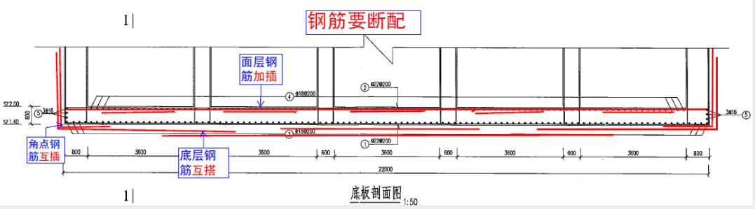 為提高溧水經(jīng)濟開發(fā)區(qū)圩區(qū)排澇能力,新建三丫圩、章西圩、凌莊圩3座排澇站工程。三丫圩排澇站設計排澇流量13m3/s,主泵采用5臺900ZQ-85D型潛水軸流泵,總電機功率1250千瓦;章西圩排澇站設計排澇流量10m3/s,主泵采用4臺900ZQ-85D型潛水軸流泵,總電機功率1000千瓦;凌莊圩排澇站設計排澇流量7m3/s,主泵采用3臺900ZQ-85D型潛水軸流泵,總電機功率750千瓦。 會上我公司咨詢專家對:泵站引河與周邊河道平面銜接;出水池隔水墩布置;沉管灌注樁樁長、樁距;翼墻配筋;電氣設備布置等提出了許多合理化建議。 指導設計人員鋼筋混凝土結構配筋要堅持“兩原則、六字方針”,兩條原則:①滿足構件最小配筋率要求;②滿足構件極限承載力要求和構件正常使用極限狀態(tài)下裂縫開展寬度及撓度變形要求。配筋六字方針:“斷配、互插和互搭”。以泵室配筋為例,泵室為框架結構,各框架固支連接點外側鋼筋適當加長,互插借用,變構造鋼筋為受力鋼筋,增加角點抵抗彎矩值;隔墩處底層鋼筋互搭;面層鋼筋中間加插加強短筋。如下圖所示: