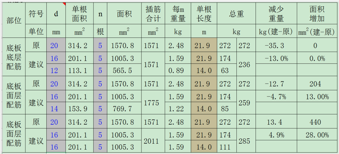 據(jù)此原則,建議底板面層、底層配C20@20的通長鋼筋改為C16@20,角點處鋼筋互插、面層鋼筋加插和底層鋼筋互搭C12/14/16@20。 施工圖泵室底板面層原配鋼筋和建議配置鋼筋對比表  由表中可看出泵室底板面層原配C20@20的通長鋼筋改為C16@20+加強短筋C12@20,鋼筋用量減少13.0%、面積兩者持平,即安全系數(shù)相同;C16@20+加強短筋C14@20,鋼筋用量減少4.7%、面積增加13.0%,即安全系數(shù)提高13.0%;若改為C16@20+加強短筋C16@20,鋼筋用量雖增加4.9%、但面積增加28.0%,即安全系數(shù)提高28.0%。 (供稿:設計分公司 盧士亮) |