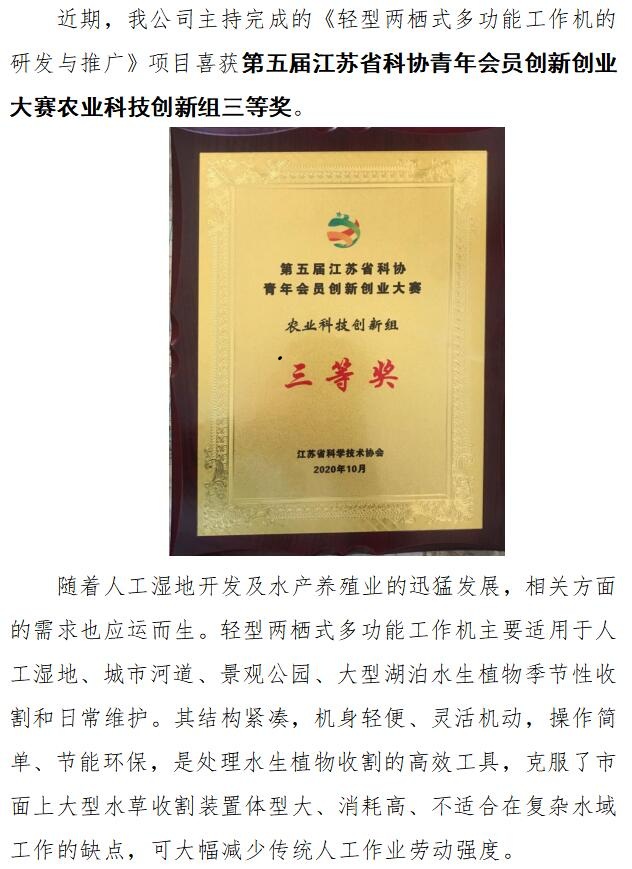 公司喜獲第五屆江蘇省科協(xié)青年會(huì)員創(chuàng)新創(chuàng)業(yè)大賽農(nóng)業(yè)科技創(chuàng)新組三等獎(jiǎng)作者:admin 來(lái)源: 日期:2020-11-3 15:06:20 人氣: